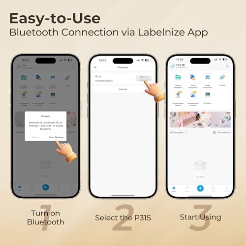 – **Bluetooth Connectivity**: Easily connect the P31S to your smartphone or tablet via Bluetooth. Use the dedicated app to customize your labels with a variety of fonts, sizes, and colors.